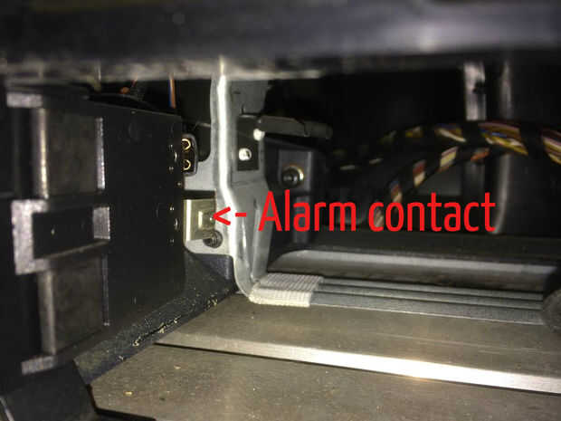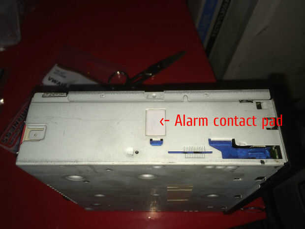 Este contacto es para la alarma. La unidad principal de fábrica empuja cerrado. Si la unidad de fábrica se quita cuando la alarma está activada, la alarma suena.