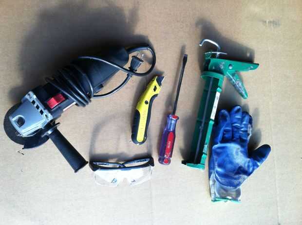 Sólo unas pocas herramientas se necesitan para una instalación de revestimiento de chimenea exitosa. Necesitarás un cúter, destornillador de cabeza plana, calafateo pistola, un par de guantes de trabajo y gafas de seguridad. Se muestra en la imagen es un molino con una rueda de corte. La amoladora le dará el mejor corte al cortar el forro de chimenea exceso. Una sierra sable o sierra para metales también funcionará bien. Una taladradora se necesitarán también para el proyecto pero no se muestra en la imagen.
