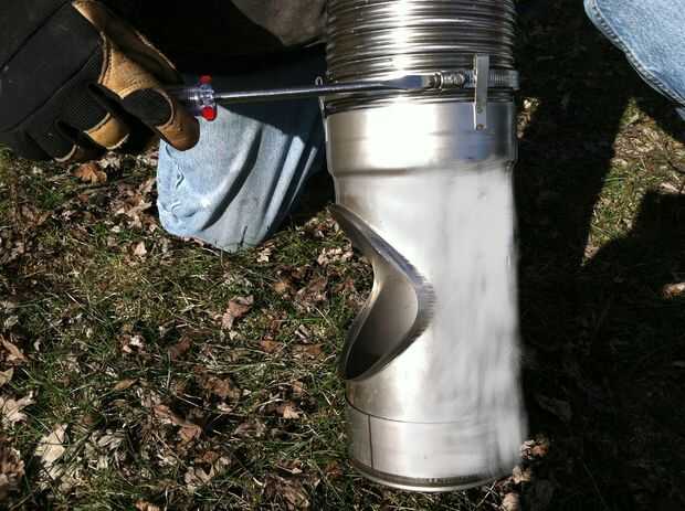 Para esta aplicación demuestra la conexión de la tee de dos partes. La parte de la conexión de tee con el corte del lado es conocida como la parte vertical de la t. La parte de la t con la abrazadera de manguera bucle se conoce como la parte horizontal de la t. Comience ubicando la parte vertical de la t e Inserte el forro en la parte superior de la final femenina. Apriete la abrazadera en la parte superior de la parte vertical de la t en la línea con el destornillador de cabeza plana. Esto le dará un gran, apretada en forma sin tener que taladrar los tornillos a través de la membrana.