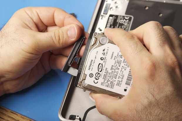 Suavemente empezar a quitar el conector del lado del HD, manteniendo paralelas al lado de HD. No sólo quitar un lado y luego otro.