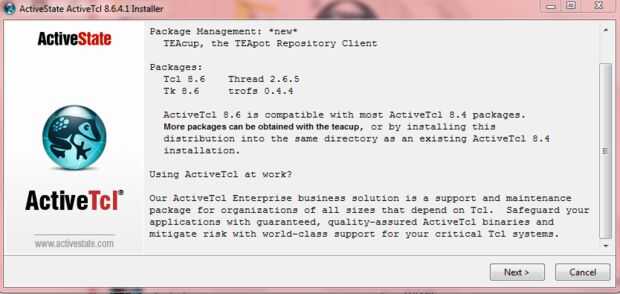 * Primero encontrar donde descargaste el instalador ActiveTcl y abrirlo