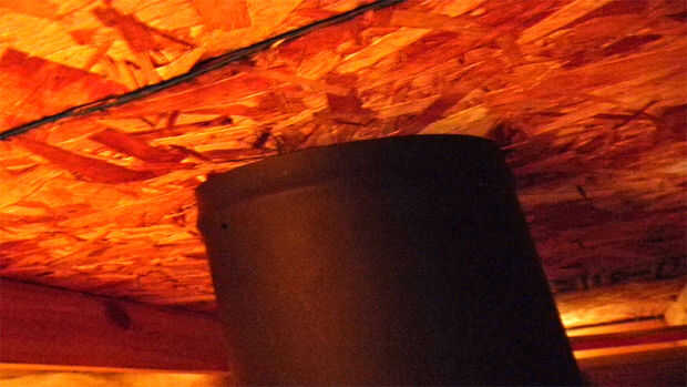 Instalación de tubería de chimenea de madera de la estufa a través de un techo plano (2 / 8 paso)