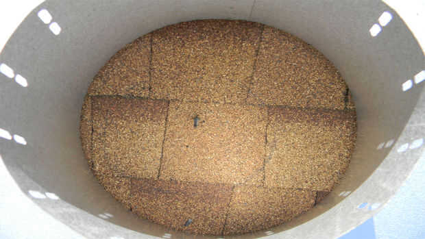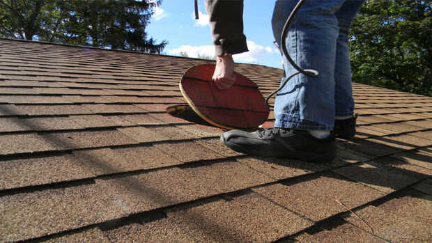 Tome su techo ajustable intermitente y se centran en el tornillo que corría por la cubierta de la azotea. Una manera fácil para marcar el agujero que necesita hacer es mediante el parpadeo como stencil y pintura interior en las tejas del techo. Una vez que se marca el agujero, use su sierra de sable y corte el agujero a través del techo.
