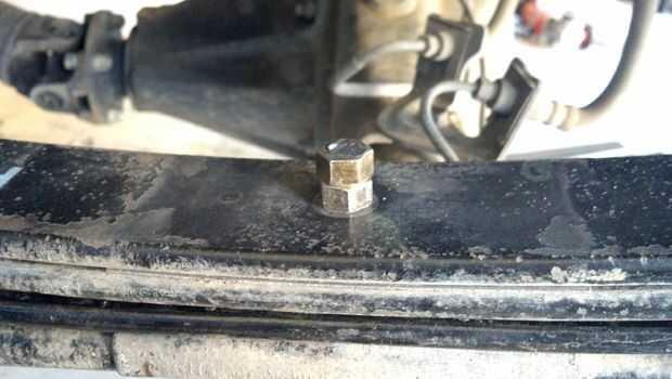 6. esto es donde usted puede tener que usar abrazaderas en U o un amigo o dos para ayudar a conseguir la tuerca en la parte superior, o tener suerte y no tener que luchar mucho. Después de apretar (uso una llave de torsión para apretar las especificaciones) y hay un montón de perno de izquierda, se necesita segarla, (ver foto segunda al último). La mina en la parte superior de la tuerca pero podría dejar algunos sobresale, todo depende del tope de goma (si tienes uno, ver última foto).