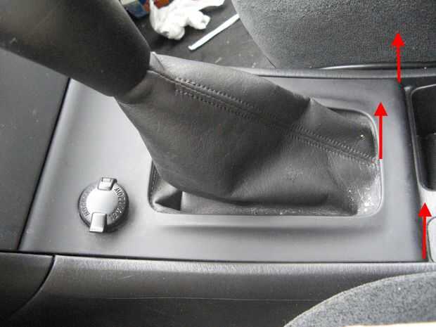 A continuación, quitar la moldura alrededor de la palanca de cambios. Para hacer esto, levante la parte posterior de la pieza de adorno. Esto liberará la parte de atrás y le permiten sacar fácilmente las lengüetas frontales hagan.