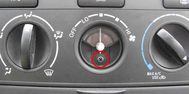 Los tornillos que sujetan la radio en su lugar están detrás de la pieza de adorno inferior que contiene el clima controles perillas y compartimentos de almacenamiento. Para quitar esta guarnición primero saque la perilla de control del ventilador. Esto expondrá el tornillo que sujeta el embellecedor en. Usando el destornillador phillips, retire este tornillo.