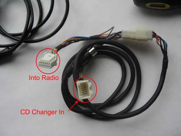Con la radio que ahora puede conectar el cable que va desde la radio hasta la caja de interfaz. En un extremo de este cable hay dos tapones blancos, uno de los extremos macho y una hembra. Inserte el extremo macho en la parte posterior de la radio en la ranura que se muestra en la imagen. Si tiene un cambiador de CD fábrica deberá desenchufar el cable y Inserte el conector hembra del cable nuevo.