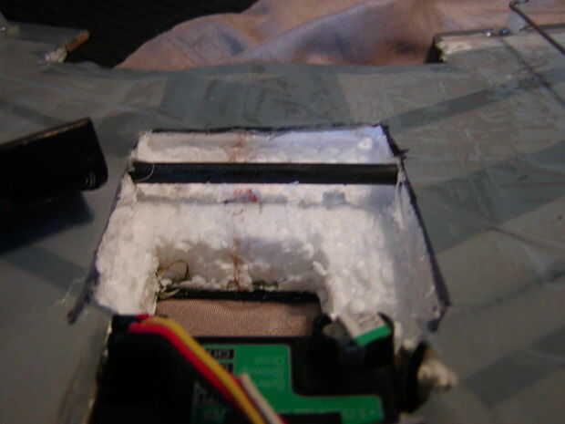 -Ahora y cortar la espuma interior de donde se corta dejando un hueco para la cámara en, I mi caso tuve que recortarlo un poco más para despejar un carbono mástil que instalé la última vez recupera el plano.