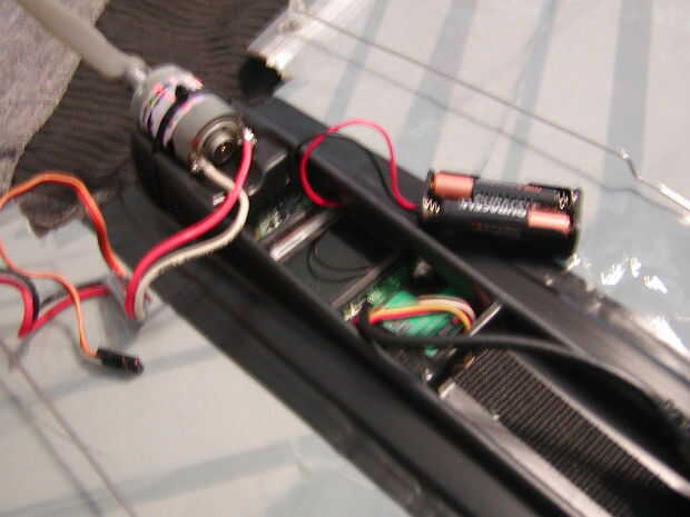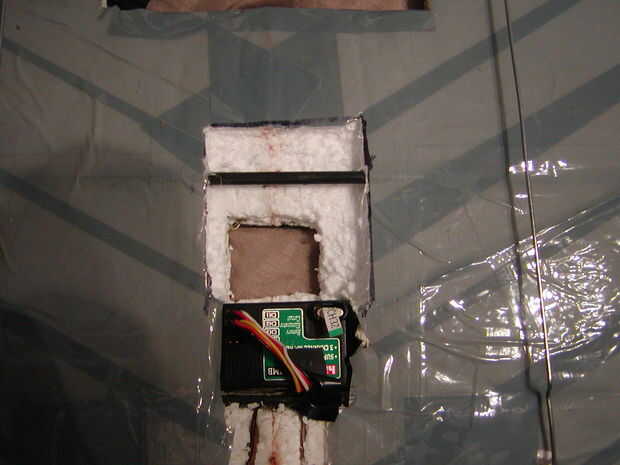 -Con la bandeja de corta un agujero en la parte inferior del ala de la lente empujar a través. En mi caso yo corte la sección cuadrada entre el receptor y el montaje del motor.