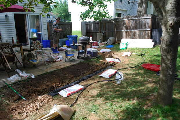 Piedras de varios tamaños, dependiendo de tu proyecto te va a necesitar mucha gravilla, piedras, rocas, etc.. Generalmente vienen en bolsas 0,5 de pies cúbicos. Puede adquirir una gran cantidad de piedra de su centro de jardinería local. Hacer tus matemáticas. Longitud x anchura x profundidad de la zanja será su volumen total. Comprar más rock que el y usted será bueno para ir.