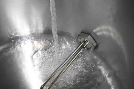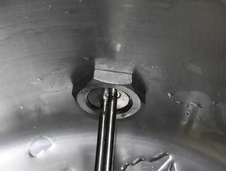 Tenemos que apretar la tuerca hasta que el lado del acero inoxidable fue casi al ras contra la tuerca antes de nuestra brewpot herméticos al agua.