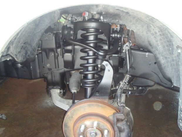 La rótula superior es una parte del brazo de control superior y se fija al eje. Utilice la toma de 21mm para quitar la tuerca en la parte inferior de la rótula. Esta rótula suele ser bastante difícil de saltar. Fuertes golpes a la parte superior de parte del eje con el martillo le permitirá la bola superior conjunta con pop out. Asegúrese de no dejar que el conjunto de eje y cubo caerse. Utilizar a algún tipo de correa que el eje en cuanto a evitar la tensión en la línea de freno o exceda el eje de la CV. Fijación de la correa para el brazo de control superior generalmente funciona mejor.
