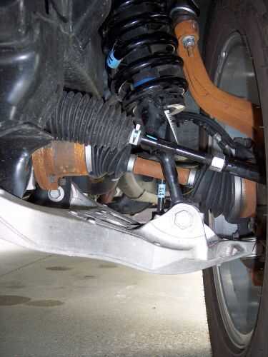 En la base de la descarga, te darás cuenta de donde está atornillado al brazo de control inferior. Quitar este tornillo con la llave de 27mm y los 30mm. Usando el martillo y punzón, retire el perno.