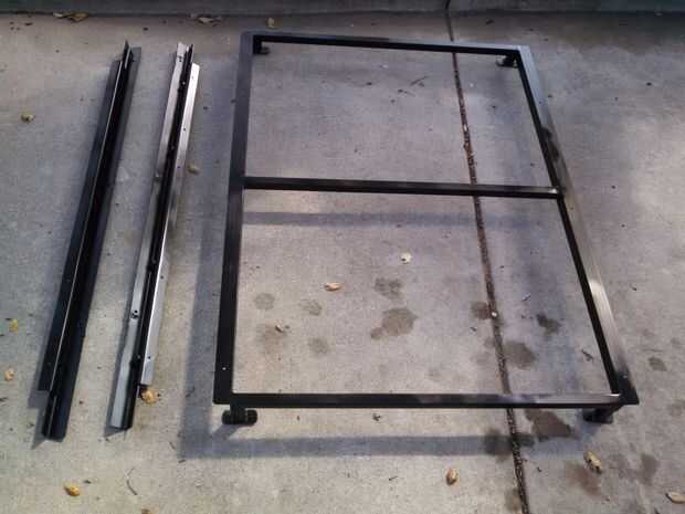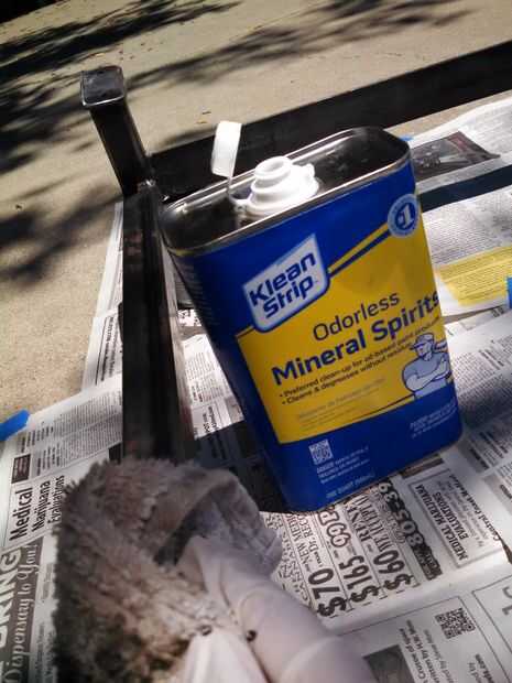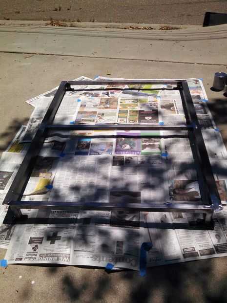 A continuación, limpiar el rack y el panel los soportes de montaje con aguarrás para quitar grasa y suciedad y les dio tres manos de pintura en aerosol negro semibrillante. Puede manejar el aerosol es definitivamente vale la pena el extra de $5.