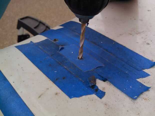 - Perfore a través de la cinta de marcado, mirando con el taladro en reversa. Esto lo obtiene a través de la capa superior de gel sin agrietarse.