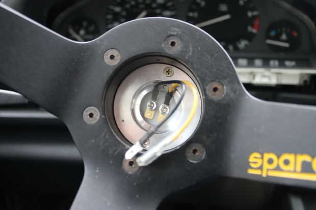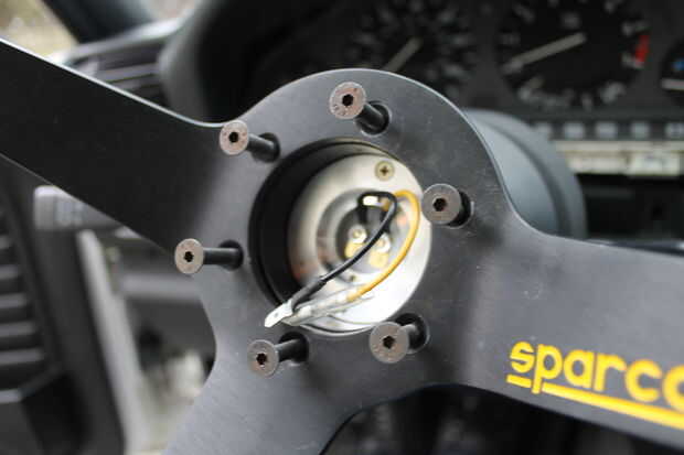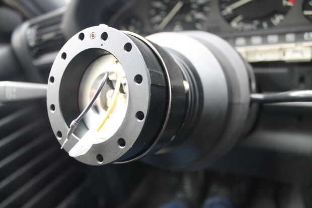 Presione el otro lado de la liberación rápida en su posición hasta que encaje (imagen 1). Si es posible, vuelva a instalar la rueda de manejo con el hardware original. Mi hardware de volante original era infrecuente largo (cuadro 2). Para solucionar esto tuve que cortar mi hardware existente (cuadro 3). El hardware correcto requiere 3mm 1/2" tornillos de cabeza allen. Inserte el hardware correcto y asegurar es apretado (cuadro 4). El volante ya está instalado y debe estar correctamente alineada así.