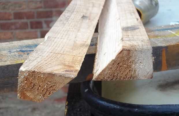 Cortar toda la longitud de la pieza elegida de madera a 45 *: