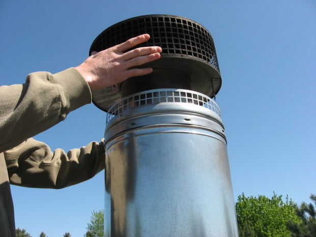 Comience usando su plano o destornillador phillips y quite la lluvia tapa de la tubería de ventilación. Generalmente son 3 tornillos ubicados en el lado de la tapa para lluvia. Asegúrese de que usted guarde los tornillos por lo que se pueden reutilizar para colocar la tapa para lluvia en.