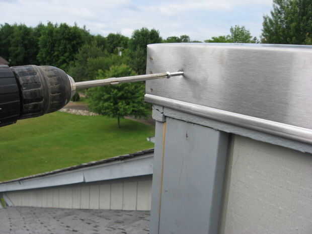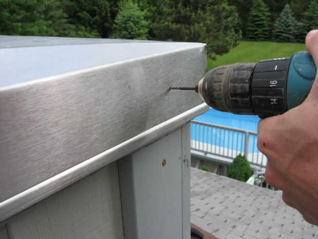 En los lados de la cubierta de la persecución, también conocida como la falda, taladre un orificio guía en cada esquina. Para una cubierta más grande, tienes que tener algunos más para añadir estabilidad. Para mejores resultados, colóquese el taladro a baja velocidad al intentar perforar acero inoxidable. Una vez que el agujero piloto están roscados, utilizar tornillos de acero inoxidable para atornillar la tapa de chimenea chase a la persecución.