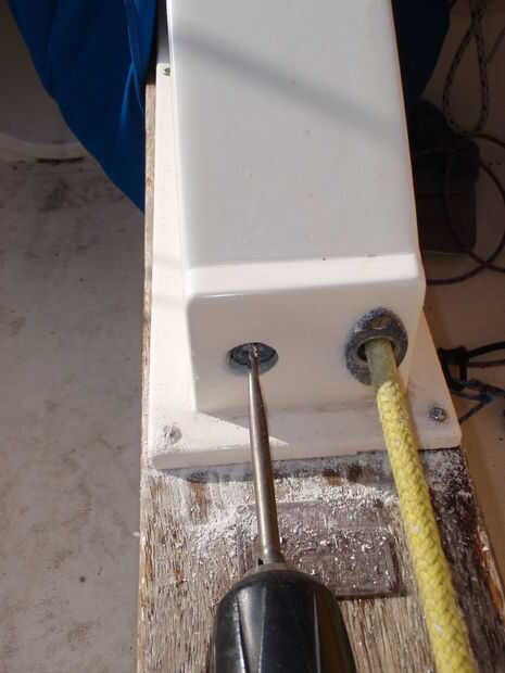 Instalación de una placa de centro abajo el recorrido en un bote de Hawk20 (2 / 5 paso)