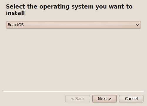 Tienes que hacer clic en reactos como el sistema operativo a instalar.