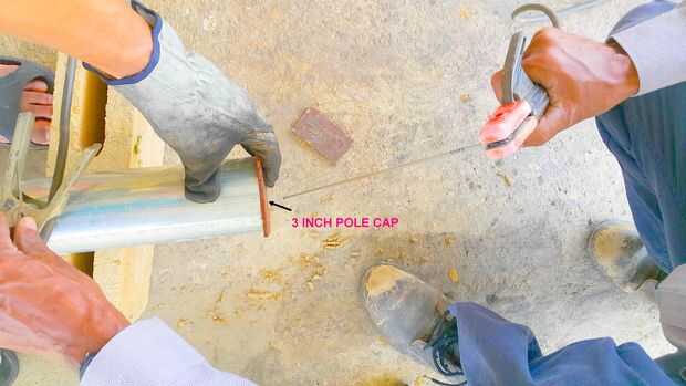 La parte superior de los postes de acero galvanizado de 3 pulgadas nos soldada con autógena metal pisos para mantener el agua de lluvia hacia fuera.