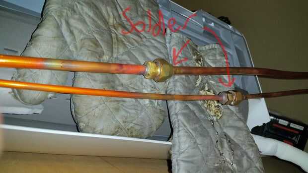 me gusta usar electrónica grado soldadura para sellar herméticamente las tuercas en los extremos de las líneas de cobre. Esto garantiza cero fugas y larga vida del sistema. Mi antorcha de propano se utilizó para calentar las tuercas con cuidado y aplique soldadura a fundirse en los espacios y los hilos de rosca.