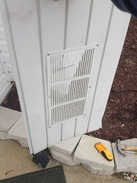 Ok así que aquí está lo que parece el producto terminado.  Tiene una malla en la parte trasera para mantener bichos poco hacia fuera, pero usted consigue la idea general.  Este respiradero algo debe alinearse con el agujero que acaba de corta y pintado.