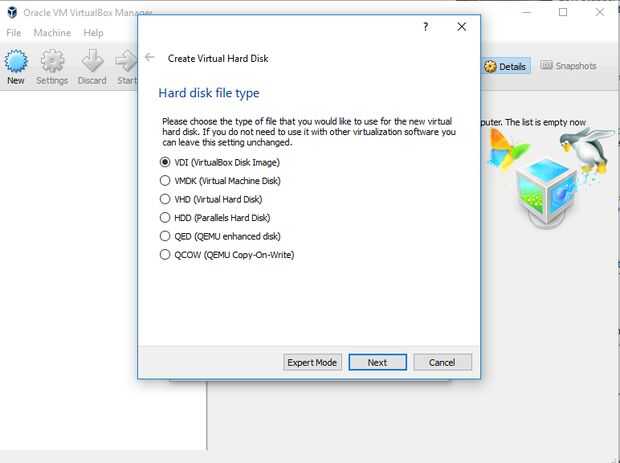 Aquí tienes varias opciones. Personalmente recomiendo seleccionar "imagen de disco de virtualBox". Haga clic en "siguiente".