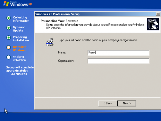 Oprima el botón "Enter", elija el valor predeterminado para todo: NTFS filesystem etc. y pulse F8, si está de acuerdo con la licencia. Entonces comienza la instalación: