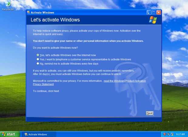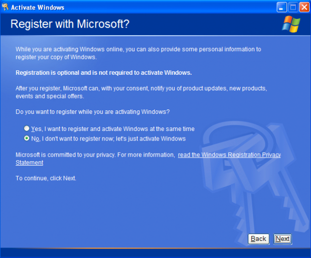 Sin activación, legalmente no puede usar Windows después del período de prueba de 30 días. Después de la activación, Windows Genuine Advantage verificar obras, también.