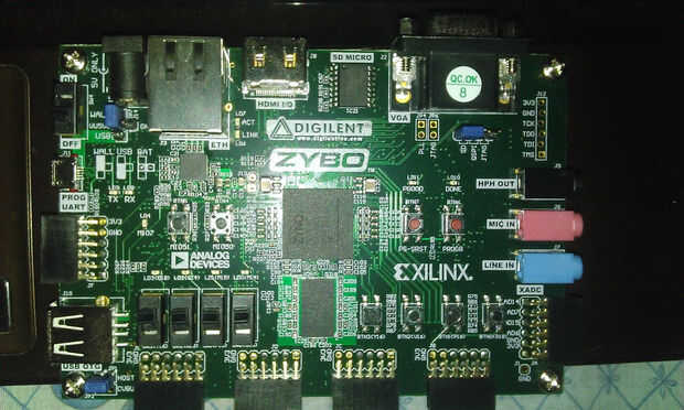 La tarjeta Digilent Zybo está construida alrededor de parte de Zynq SoC (System on Chip) de Xilinx. Este IC tiene un doble núcleo de Arm A9 que funcionan como cualquier otro microcontrolador. Lo que la hace especial es que también tiene hardware FPGA