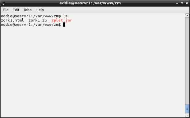 Copie los archivos en ese directorio zplet.jar zork1.html y zork1.z5