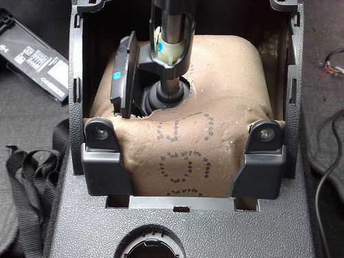 4 - sacar los dos tornillos de torx, cerca de la palanca de cambios