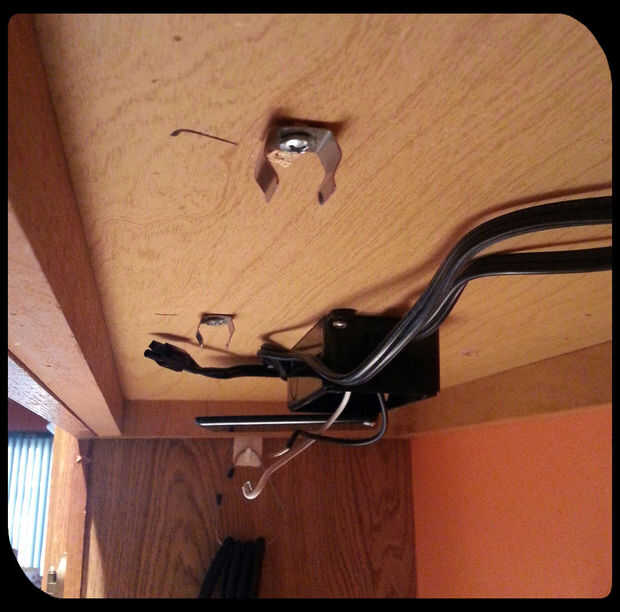 Como se puede ver en la imagen, yo he montado las presillas que llevará a cabo el aparato nuevo utilizando la plantilla de papel suministrado y montado en la caja negra que viene con el accesorio básicamente los cables y tuercas del alambre. Este particular accesorio no alambre por dentro por lo que fácilmente puede ser ampliado por daisy cadena accesorios together.*