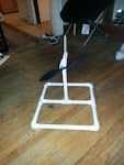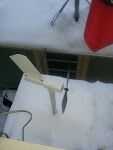 Otra manera estoy alimentando mi baterías de 12 voltios es usando un aerogenerador. Compré mi turbina en línea e hizo un marco para él. Hay un cable positivo y negativo que sale conectado a + y - los cables para el controlador de carga. Corté un agujero en el tubo de PVC para los cables de salida.