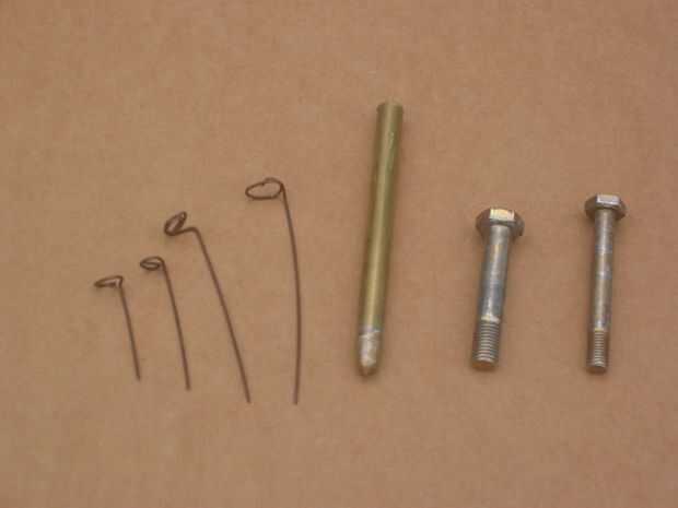 En el centro ves cierto stock de cobre amarillo del mismo tamaño como los pernos. Bala punta final por sujeción en una prensa del taladro y girando mientras sostiene un archivo hasta el final.