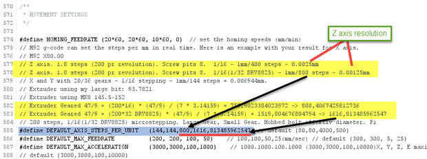 Supongo que funcionó 1/16 en los ejes afectados, por lo que simplemente necesita duplicar ese número. Aviso que seguí comentarios en ambos el antiguo y nuevo como puedo quiero cambiar en un momento posterior, y porque es bueno saber por qué mi configuración de como son ahora.