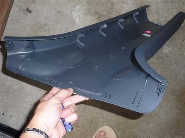 Este panel superpone el panel desea hacia fuera.  Quítelo tirando a 1/2", curiosos a los lados que abrazan el marco y hacer pivotar el panel inferior (hacia la parte delantera del coche).