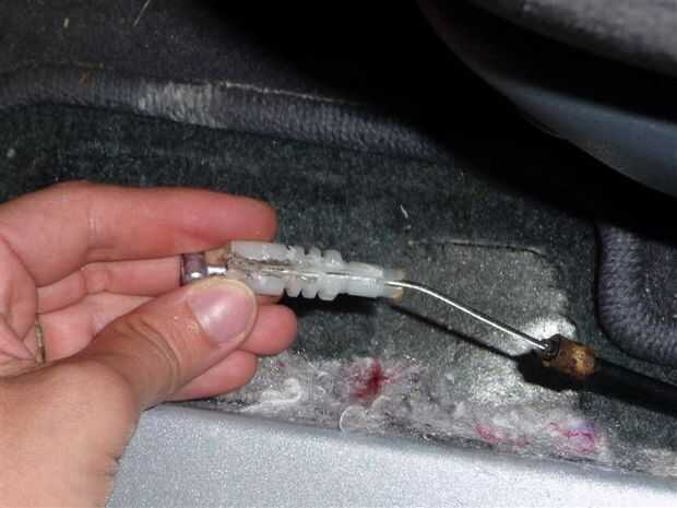 Cuando es nuevo, esta pieza fue unida al cable metálico-punto de pellizcamiento, creando tensión en el empuje y las indicaciones de tirar de la palanca. Separando desde el punto de pellizco sólo da tensión con el movimiento de tirar de la palanca (tronco liberación todavía funciona). Esto es lo que debe ser abordado.