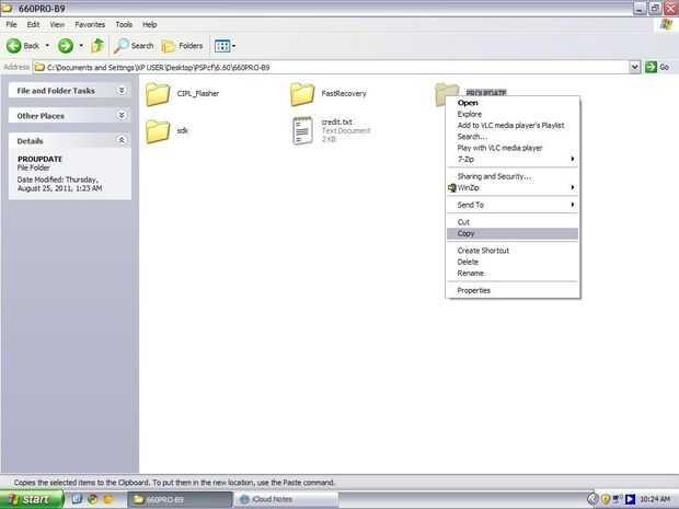 Generalmente tendrás que descomprimir la carpeta que has descargado. Te recomiendo 7-Zip. Cuando termines con eso, buscar la carpeta "UPDATE" en el nombre. Para asegurarse de que tienes una, sólo habrá un archivo en la carpeta de nombre "EBOOT. PBP". Haga clic derecho en esta carpeta y seleccione 'Copiar'.
