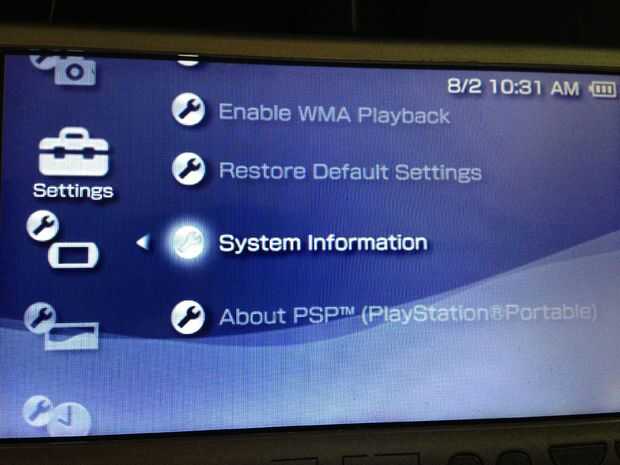 Para asegurarse de que su CFW instalado, ir a opciones» sistema de información