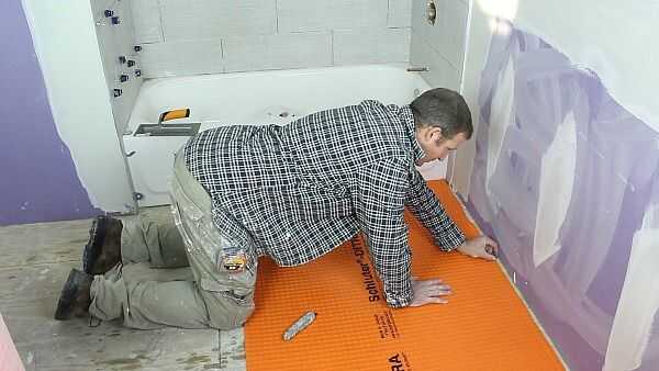 Dry fit la DITRA en su subsuelo de madera.