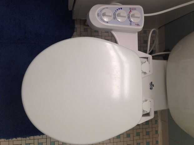 Ajustar el orificio para el sobrevolar el agujero armario. Coloque la funda del asiento en el bidé y enroscar ambos extremos de la parte inferior.