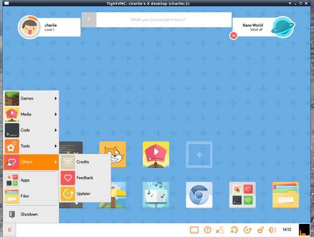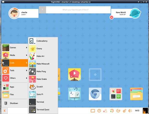 - A través de la terminal. En el lado izquierdo de la pantalla hay un gran K. Golpear, luego ir al código y golpear la Terminal. Como todos los Raspbian imágenes escriba sudo apt-get update y luego sudo apt obtener actualización. El superusuario pasar si no cambias es kano. Instale todas las actualizaciones necesarias.