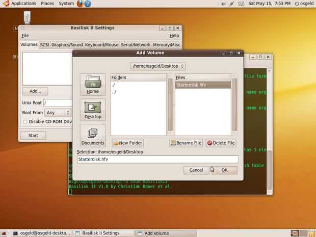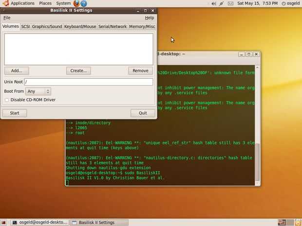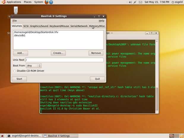 Ahora el emulador se arranque desde el disco de arranque y tener acceso al verdadero disco duro de Macintosh al mismo tiempo