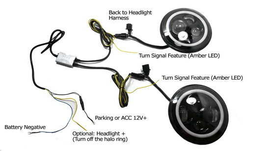 Si usted compró el más avanzado altavoz forma LED linternas con características de switchback redondo de 7", primero deberá conectar los faros de LED para la caja del módulo antiparpadeo LED CAN bus driver. Otra vez, debe instalar estos faros Jeep Wrangler LED con la caja del módulo, para que no queme el LED.