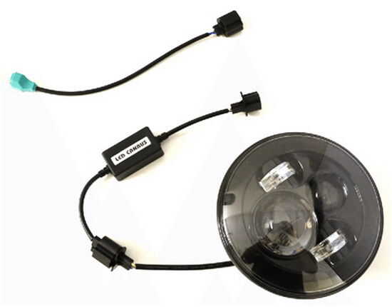Conecte los faros de LED de 7 pulgadas a la caja del módulo antiparpadeo LED CAN bus driver. DEBE instalar estos faros Jeep Wrangler LED con la caja del módulo o riesgo queme su linterna LED.