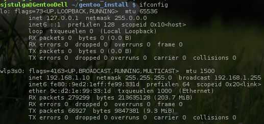 Para instalar Gentoo en su máquina de la imagen de instalación mínima, debe tener una conexión de red. El medio de instalación debe detectar el hardware del dispositivo y automáticamente iniciar los controladores para sus tarjetas de red. El método más fácil para establecer una conexión de internet es conectarse directamente con un cable ethernet. Conecte un cable ethernet desde el puerto de ethernet de su ordenador a su red router o switch. Esto puede automáticamente establecer una conexión, pero no pudo. Para tipo el siguiente comando en tu terminal y presione ENTRAR: