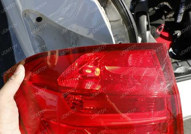 Esto es cómo su iJDMTOY nuevos BMW 3 series lámparas de señal de giro posterior de LED se vería en la vivienda. Poner la luz de la cola en la vivienda y apriete los dos tornillos para asegurar la carcasa de la lámpara de cola posterior a la serie 3 de BMW.